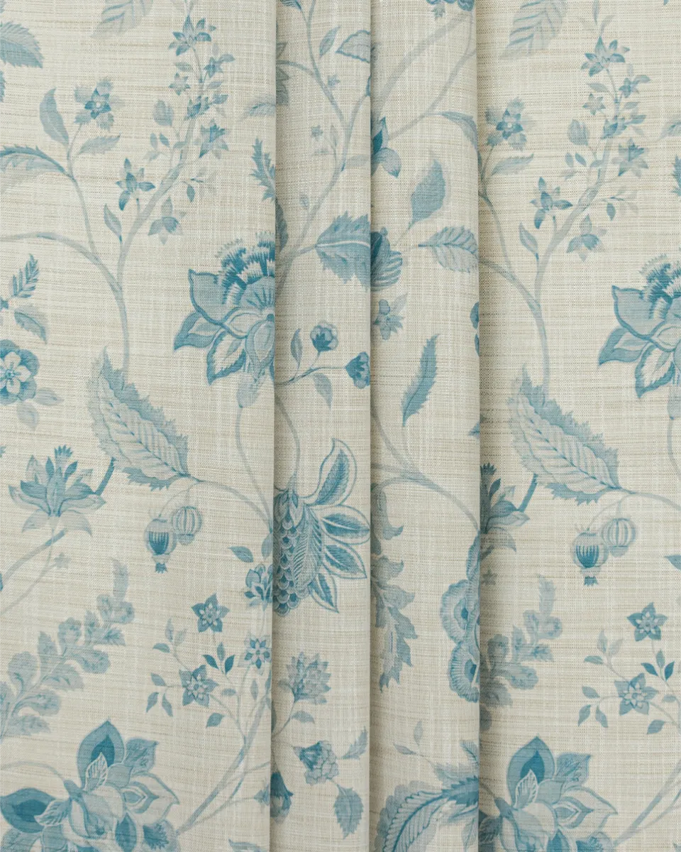 Blooming Spring – Linen Blue Custom Curtains