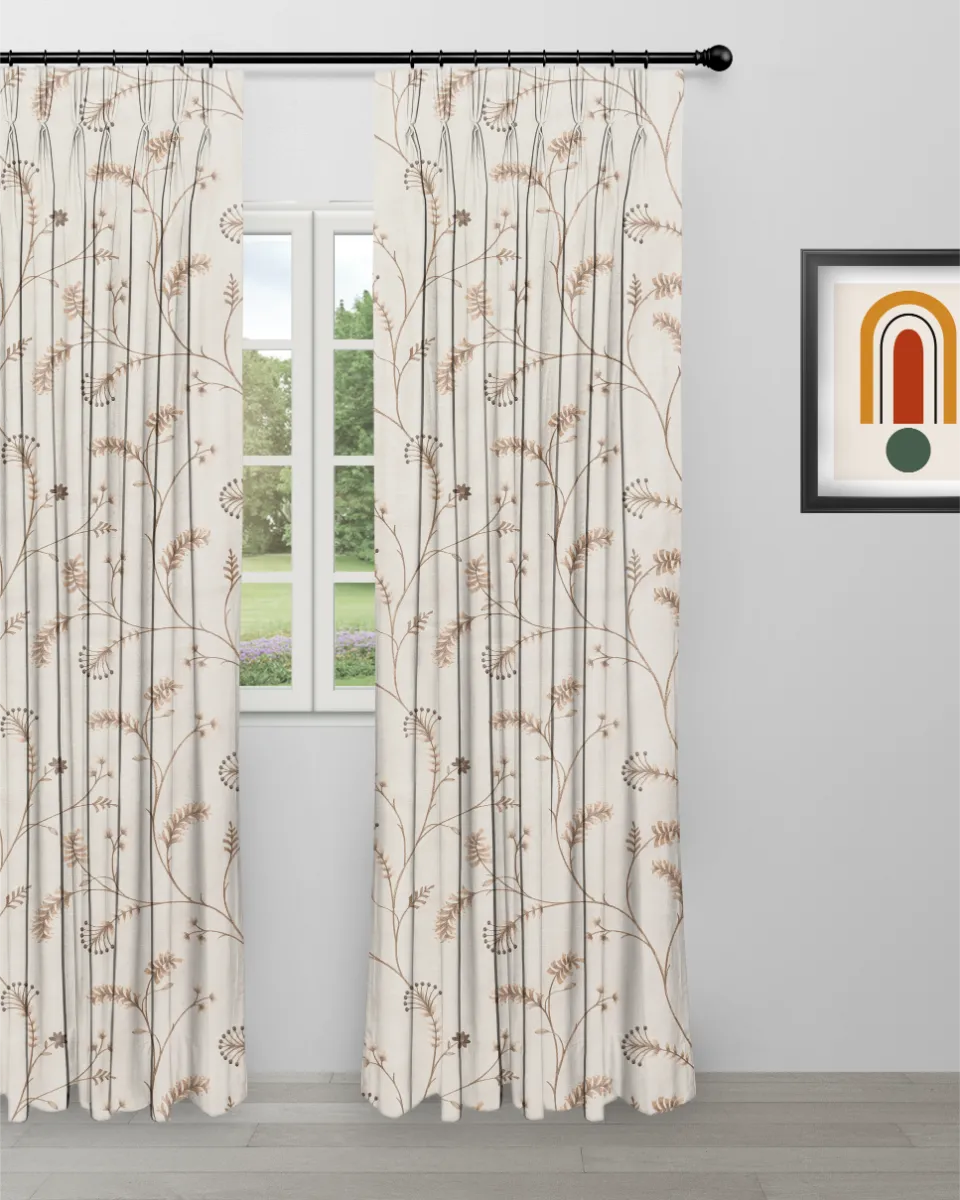 Embroidered Silvy – Walnut Custom Curtains