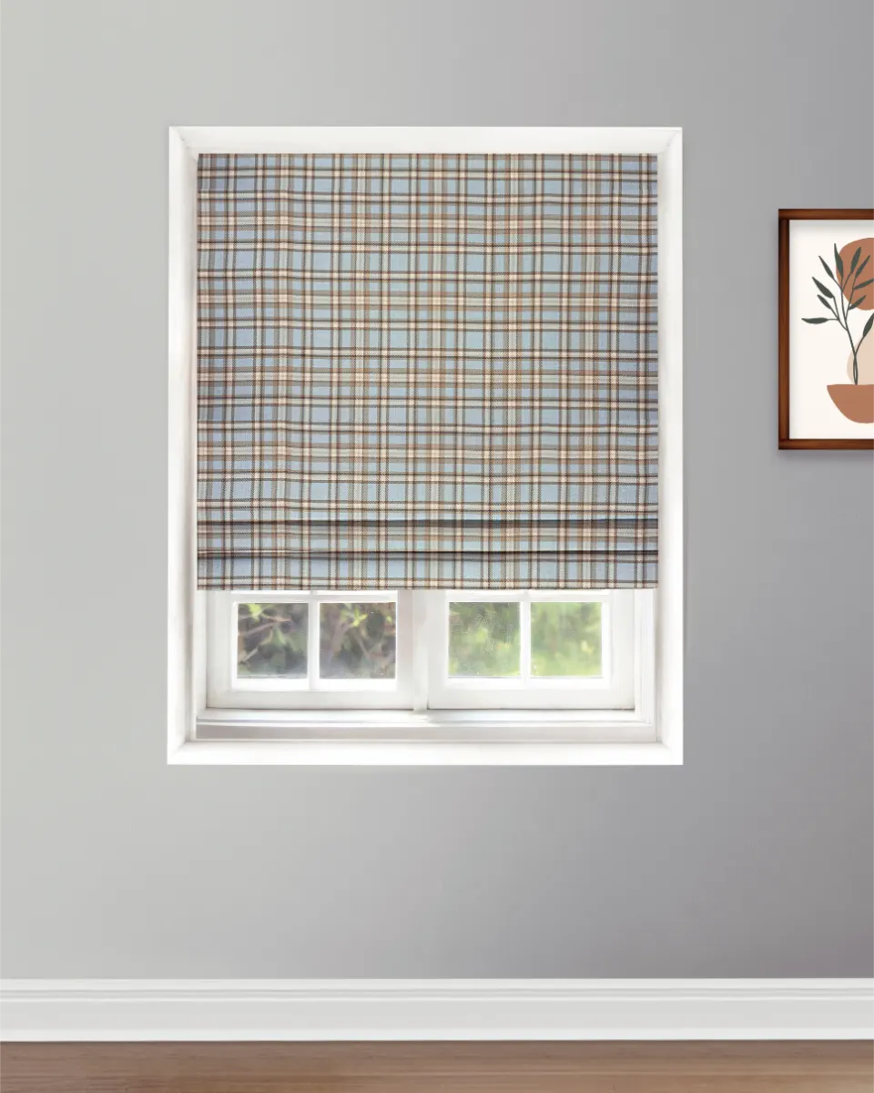 Farmhouse Plaid Check – Storm Roman Shades