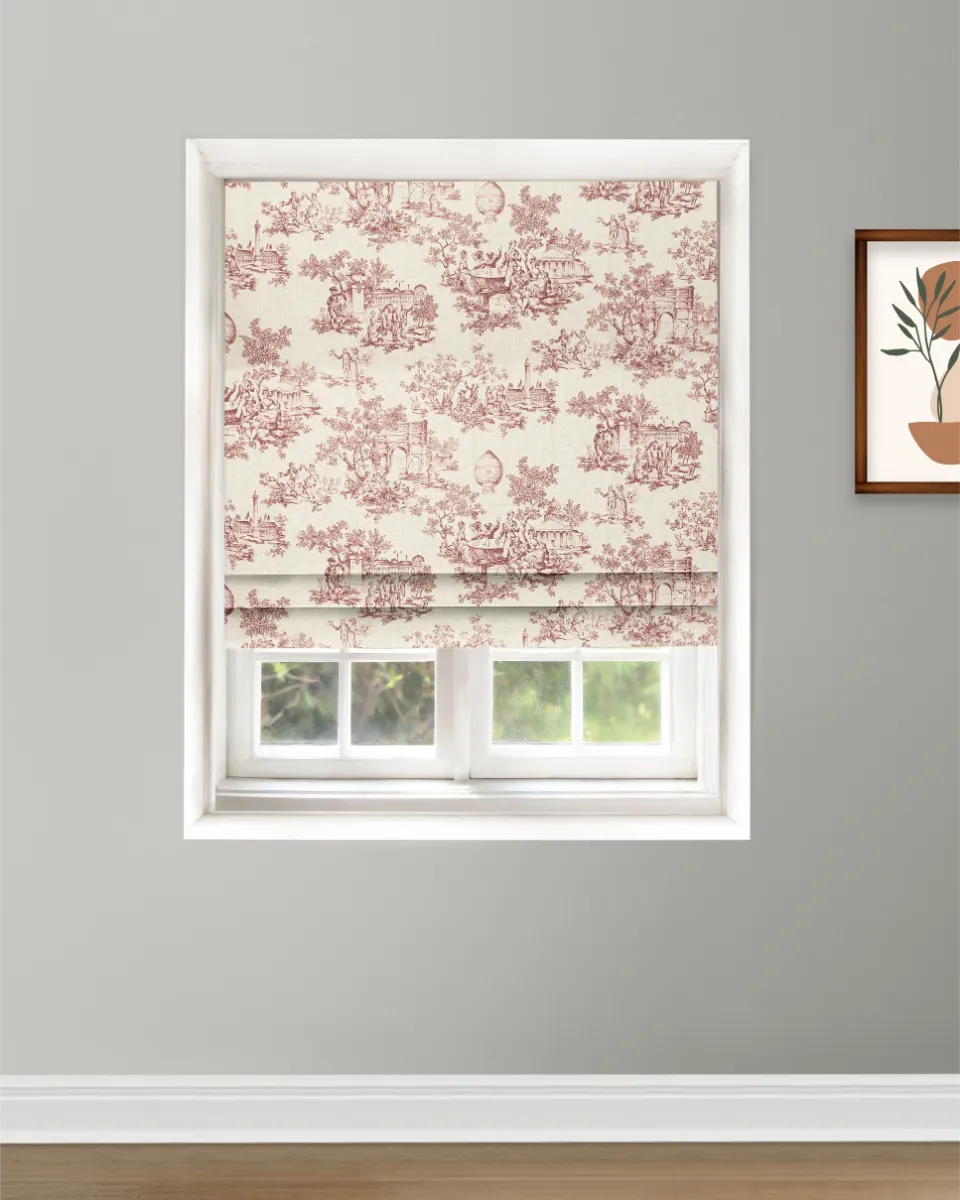 French Toile – Misty Rose Roman Shades