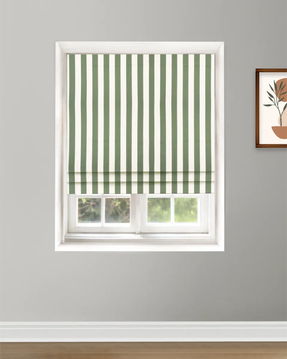 Vintage Linen Stripes – Khaki Green Roman Shades