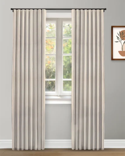 Coastal Stripes – Taupe Ripple Fold Drapes
