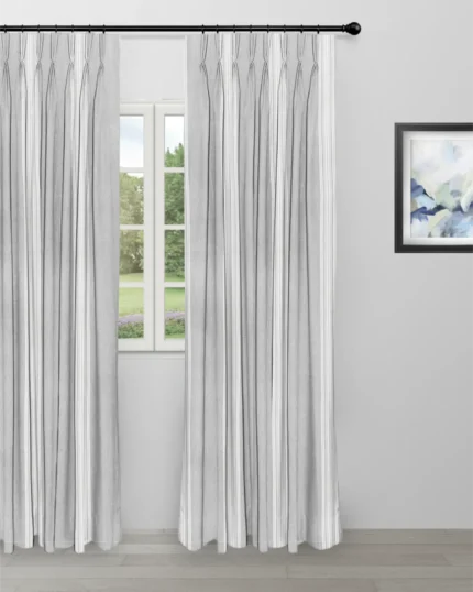 Country Stripes – Broad Gray Ripple Fold Drapes